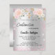 En modern, snyggt och glamorös inbjudan till bekräftelse. En faux silver tittar bakgrund med rosa faux glitter, sparkler och blommigtar för rosa. Namn är skrivet med ett modernt handskript i stil. Anpassa och lägg till information.