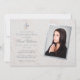 En modern inbjudan till en religiösa. Texten står i den lämnat halvan. Fotot lutas i högernas halva i en faux-silver-folie ram. Bakgrunden är vit marmor. Ovanför texten finns ett faux silver kor. Texten är silversalt grått. Namn skrivs i ett kalligrafiskt skript för elegant. Baksidan är faux silver-folie. Bilden som du ska ersätta representerar en flicka som ber, sedd från profilen. Det är av Petr Kratochvil från Public Domain Bilder och har modellfrigivning.