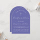 En enkel, modern välvd bekräftelseinbjudan. Den har endast vit text på violett bakgrund. I den övre delen finns ett kors med välvd text ovanför. Tillfället och namnet är skrivna med skrivstil.