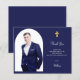 Uttryck din hjärtliga tacksamhet med stil med detta eleganta marinblå fotobekräftelse tack-kort. Designat speciellt för pojkar, har detta kort en rik marinblå bakgrund, en subtilt guldkorsaccent och utrymme för ett personligt foto för att fira milstolpen.
