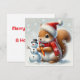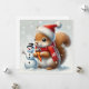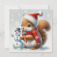 Bekväm ekorre med snöman och tomtehatt julkort