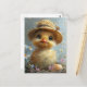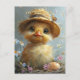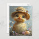 Knubbig gult ankling är sitta i ett bo med ett vackert dekorerat Påskägg. Hon bär sin favorithalmhatt. En vacker Monarch-fjäril sitter på hatten. Anpassa med texten, hälsning för Påsk. #generativeccontent