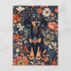 Bekvämt Dachshund omringat av brant Flowers Vykort