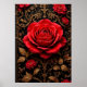 Bekvämt designad blommigt med stor, vibrerande röd ros som är sammanflätad med mindre blommor och ornat guldlöv