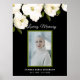Den här snyggtens elegant för begravning av blommigten Kvinna välkomstskylt med vita blommigtar, ett foto av din kära i grönt ram, deras namn och data av livet. Bakgrunden till detta minnesmärke är svart.