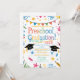Denna inbjudan från förskolan studenten är ett tydligt val för dem som vill ha en roligt, åldersanpassad firande. Utformningen är inriktad på handritad inslag, vibrant färg och anteckningsdetaljer för bärbara/klibbiga anteckningar, vilket skapar ett lekfullt och engagerande utseende. Inbjudan är imponerande med sin harmoniska blandning av färg, bilder och layout. Det är perfekten till en minnesvärd förskola studenten.