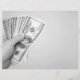En handfull pengarar isolerad över en solid bakgrund i svartvitt. Anpassa den här underbara produkten med egen skannerbar QR pub-kodtext, monogram, logotyp, företagsslogan eller personligt meddelande! (klicka på orangen "Anpassa den!" ovan)