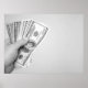 En handfull pengarar isolerad över en solid bakgrund i svartvitt. Anpassa den här underbara produkten med egen skannerbar QR pub-kodtext, monogram, logotyp, företagsslogan eller personligt meddelande! (klicka på orangen "Anpassa den!" ovan)
