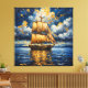 Bekvämt nog seglar frakten mot ett dramatiskt himmel. Frakten har stora, segelseglingar som fångar ljuset och skapar en varm, gyllene nyans. Bakgrunden är fylld med rik blues och mörk moln som är sammanflätade med vibrerande gyllene högdagrar, vilket tyder på solnedgång eller soluppgång. Serene vatten avspeglar färg i himmel, vilket ökar den allmänna lugnet på platsen. Struktur i målande ge är en känsla av rörelse mot vågar och segel och uppmanar tittarna att tänka sig frakten som färdas genom det öppna vatten.