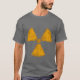 Bekymrat gult-brunt utstrålningssymbol på T-tröja i blandad stilar och färger.
