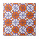 Ett mönster i Seventies utformar med belade med tegel stora blommor, i orange, vit, och 3 skuggar av lilor.
