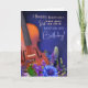 A stunning BELATED birthday card featuring a warm-toned violin against a rich blue background surrounded by purple and blue flowers. The blend of wooden texture and vibrant florals creates a heartfelt, musical belated-greeting style meant to express love even when late.
