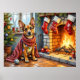 This festive holiday illustration features a loyal Belgian Malinois sitting beside a warm fireplace, wrapped in glowing Christmas lights with stockings hanging overhead. The breed’s alert expression and confident stance bring a striking presence to this cozy Christmas scene. Perfect for Belgian Malinois fans, holiday décor lovers, and Zazzle shoppers seeking unique seasonal artwork that highlights their favorite breed.