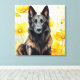 A Belgian Tervuren dog looks great against a field of yellow poppies on this gorgeous canvas art which will brighten up any room while showing your love of the tervs.
