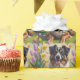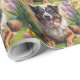 En glad hund sitter fredligt på lush grönt gräs, omgiven av färgfulla vår blommar under ett mjukt blå himmel. Den här digitala oljemålningen fångar upp ett ögonblick med uttryckliga penseldrag, varmt färg och en känsla av varm glädje.