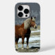 Belgiska Draft Horse in Paddock, Cell Phone Case. Digital Art. En belgisk häst på vinterpaddock bakom taggtråd. Passar bra i odlings- eller ranchdekorering. Helt anpassade.