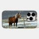 Belgiska Draft Horse in Paddock, Cell Phone Case II. Digital Art. En belgisk häst på vinterpaddock bakom taggtråd. Passar bra i odlings- eller ranchdekorering. Helt anpassade, gör det till din egen.