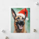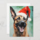 Färgfull och glatt juldesign med en belgisk malinois som bär en julhatt.