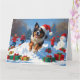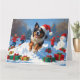 En helgdag med hjärtslitande hund i snö, som bär en julhatt och omges av färgfulla presentlådor. I bakgrunden bygger barn snögubbe bredvid ett Julgran som är täckt av snö och skapar en glatt vinter under. Perfekt för att sprida helgdag och fånga julens magi.