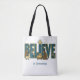 Fun tote with a beautiful nativity scene in the word "Believe" complete with baby Jesus in a manger, Mary, Joseph, shepherd, sheep and a donkey. What a bag to fill and use for all your needs over the holidays. Great gift idea for the Christians you know this Christmas.