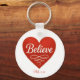 Believe red and white heart nyckelring