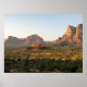 Ett solnedgång på norra ansikte av Bell Sten, tittar över lush, men öken, staden Sedona. Arizona, 2024.