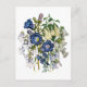 Gamla botaniska illustrationer av blommor i blått, lila och vitt.