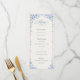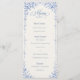 Bellefontaine Suite - French Blue Wedding Menu har en romantisk dammig blå bakgrund prydd med ömtåliga vita franska blommor för en förfinad herrgårdsinspirerad look. Designad i ett elegant 4x9-format, ger detta menykort tidlös europeisk charm till dina receptionsbord.