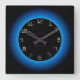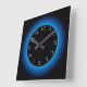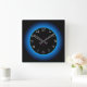 Belyst blå/aqua på svart > väggklocka