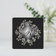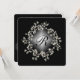 Glödande svart bakgrund med vit blomsterkrans och anpassad initial för bröllopsinbjudan till förnyelse av vigsellöfte.
