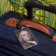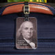 En bagagemärkre med Ben Franklins ansikte på det, tillsammans med ett citationstecken som brunn-passas till behovet för en bagagemärkre. Du kan använda SKRÄDDARSYsärdrag för att skriva in spelar ingen roll text som du önskar på baksidaen, liksom information om kontakt.