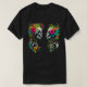 Två stiliserade skallprofiler presenteras mot en vit bakgrund. Varje skalle omges av vibranta, färgstarka blommor och löv, skapande en dekorativ och nästan blommigt andedräkt runt varje huvud. Blommorna är en blandning av fechsia, rosa, orange, gult, teal och andra ljusa färger. Löven och vinerna målas i gröntens nyck och efterliknar en naturlig tillväxt.