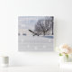 Bench på vägglåset i Snö täckt av Backe Fyrkantig Klocka