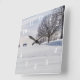 Väggklocka med bänk sitta upptill över ett snö täckt backe på en vinterdag i kallet med fotavtryck. Jag tog den här nära Sjö Springfield i Springfield Missouri, Förenade Stater. Tittar du fler utskrifter eller produkter? Besök gärna min butik: http://www.zazzle.com/timelessmomentsphtgy Det här fotot togs av Jennifer White med Timless Moments Photography. Alla bilder är upphovsrättsskyddade © Timless Moments Photography.