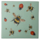 Bugs ceramic tile in grayish green with bees and ladybugs design. This fun tile would be great as an accent piece in the kitchen or bathroom. Read more about the tiles in the product description.