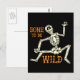 Lustigt dansskelett med stor flin. Texten säger BONE TILL VARA VILD. Perfekt för Halloween fest och firande på T-tröjor, hälsningskort, knappar, klistermärken och mycket annat! PinkInkArt-original!