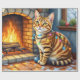 This delightful holiday illustration features a striking Bengal Cat sitting beside a warm fireplace, wrapped in glowing Christmas lights with festive stockings hanging above. The Bengal’s expressive eyes and distinctive coat pattern bring a touch of wild beauty to this cozy Christmas scene. Perfect for Bengal Cat lovers, holiday décor enthusiasts, and Zazzle shoppers seeking unique seasonal artwork celebrating their favorite feline breed.