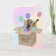 Katt i allmän kartong med ballonger och konfekt för 75:e födelsedag