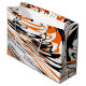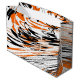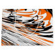 Svart och orange linjer flödar samman och tillbaka från varandra