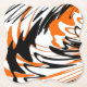 Svart och orange linjer flödar samman och tillbaka från varandra