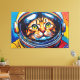 Denna digitala konst av Otis Porritt presenterar en slående bengalkatt som tittar ut från en astronautkaskett. Renderad med livfulla, mättade färger och djärva konturer, fångar kattens smaragdgröna ögon mot dess orange och svarta randiga päls. Bakgrunden exploderar med ett dynamiskt samspel av rött, gult och blått, prytt med stänk och kosmiska sfärer, och skapar ett livligt universum inspirerat av popkonst. De skarpa linjerna och den grafiska stilen betonar den äventyrliga anden hos denna unika rymdutforskare.