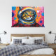 Denna digitala konst av Otis Porritt presenterar en slående bengalkatt som tittar ut från en astronautkaskett. Renderad med livfulla, mättade färger och djärva konturer, fångar kattens smaragdgröna ögon mot dess orange och svarta randiga päls. Bakgrunden exploderar med ett dynamiskt samspel av rött, gult och blått, prytt med stänk och kosmiska sfärer, och skapar ett livligt universum inspirerat av popkonst. De skarpa linjerna och den grafiska stilen betonar den äventyrliga anden hos denna unika rymdutforskare.