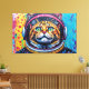 Denna digitala konst av Otis Porritt presenterar en slående bengalkatt som tittar ut från en astronautkaskett. Renderad med levande, mättade färger och djärva konturer, fångar kattens smaragdgröna ögon mot dess orange och svarta randiga päls. Bakgrunden exploderar med ett dynamiskt samspel av rött, gult och blått, prytt med stänk och kosmiska sfärer, och skapar ett livligt universum inspirerat av popkonst. De skarpa linjerna och den grafiska stilen betonar den äventyrliga anden hos denna unika rymdutforskare.
