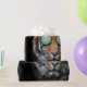 En Coola med propp i öga, stor katt, utklädd i Tiger med solglasögon en hatt i USA flagga och ett läder i jacka