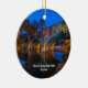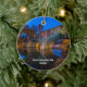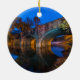 Cirkelsmycke med souvenir med en fantastisk tidig höstmorgon vid skymning med utsikt över 64 ALT Bridge i Bennett Spring State Park, Bennett Springs, Missouri, USA. Det finns fortfarande stjärnor ute. Du kan se vattenfallet från dammen på andra sidan bron med en antydan till dimma denna höstsäsong morgon.