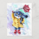Benny Blue Bunny - Cat Rädding, regnigt stormigt väder, traditionell vismisk illustration av Christine Karron