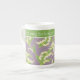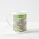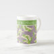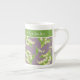En nätt benporslinkaffemugg som ska personifieras, med ett art nouveaustilmönster av liljekonvaljer på en Mauve bakgrund; från det Posh & Painterly "för kärleken av lilja samling.