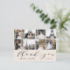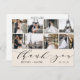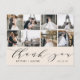 Den här eleganten tackar du för att du har 8 foton med "tack" i calligraphy-skript tillsammans med ett par namn och bröllop-datum. Baksidan av detta vykort har gott om utrymme för skriva av ett personligt tackkort, tillsammans med linjer för det utsändande adress.