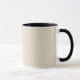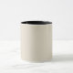 En ljus, enfärgad "Benvit" och svart kombomugg. Benvit är en vitaktig färg; en färg som liknar ljust beige. Klicka på "Anpassa" för att ändra färg eller lägga till ett mönster eller en design. Produktens Hex-kod: #e3dac9