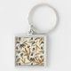 Benvita löv och ekar fyrkantig silverfärgad nyckelring